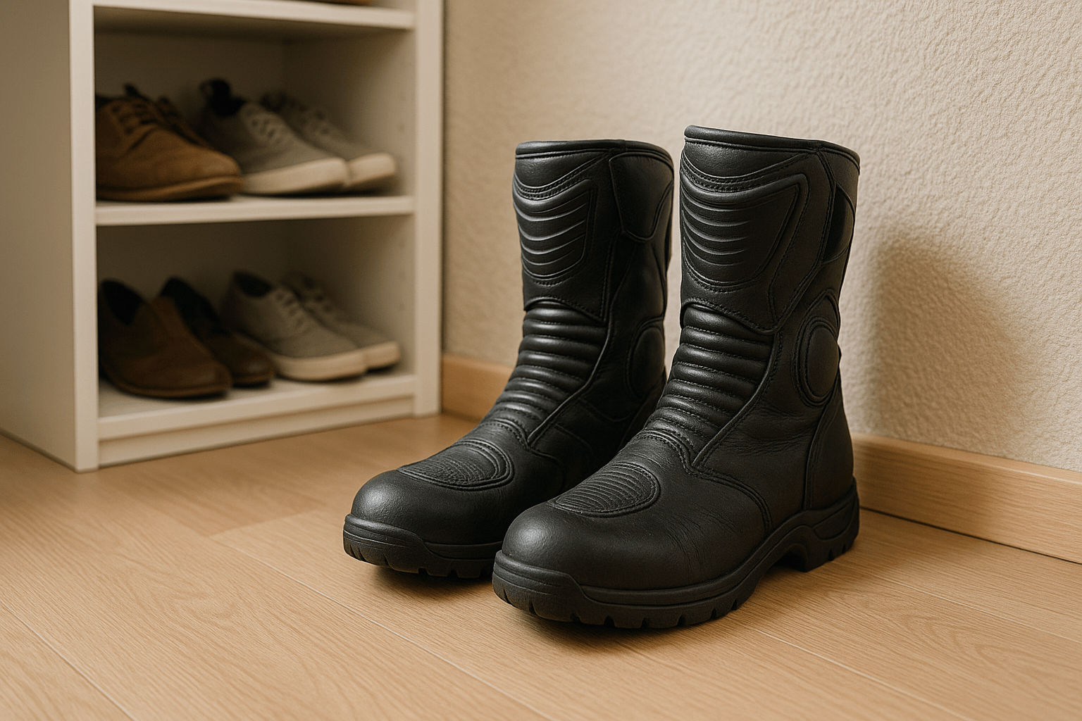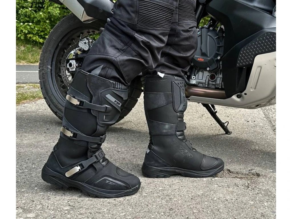 U sportovních jezdců se doporučují pevné boty s kovovými nebo kompozitními chrániči a odolnými přezkami. Cestovní boty na motorku bývají o něco měkčí a komfortnější, ale stále musí pevně držet chodidlo a kotník.