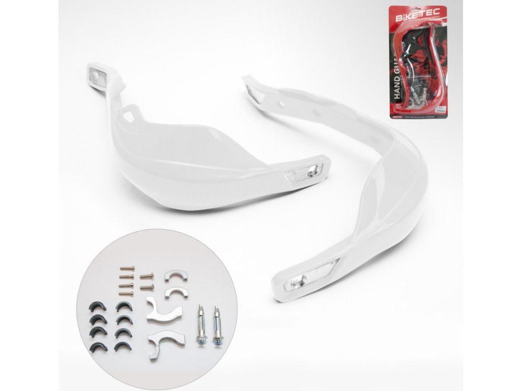 Chránič řídítek bílý hliníkový (22 mm a 28 mm) Biketec ochrání Vaše ruce při pádu. Vyrobený v kombinaci plastu a hliníku.