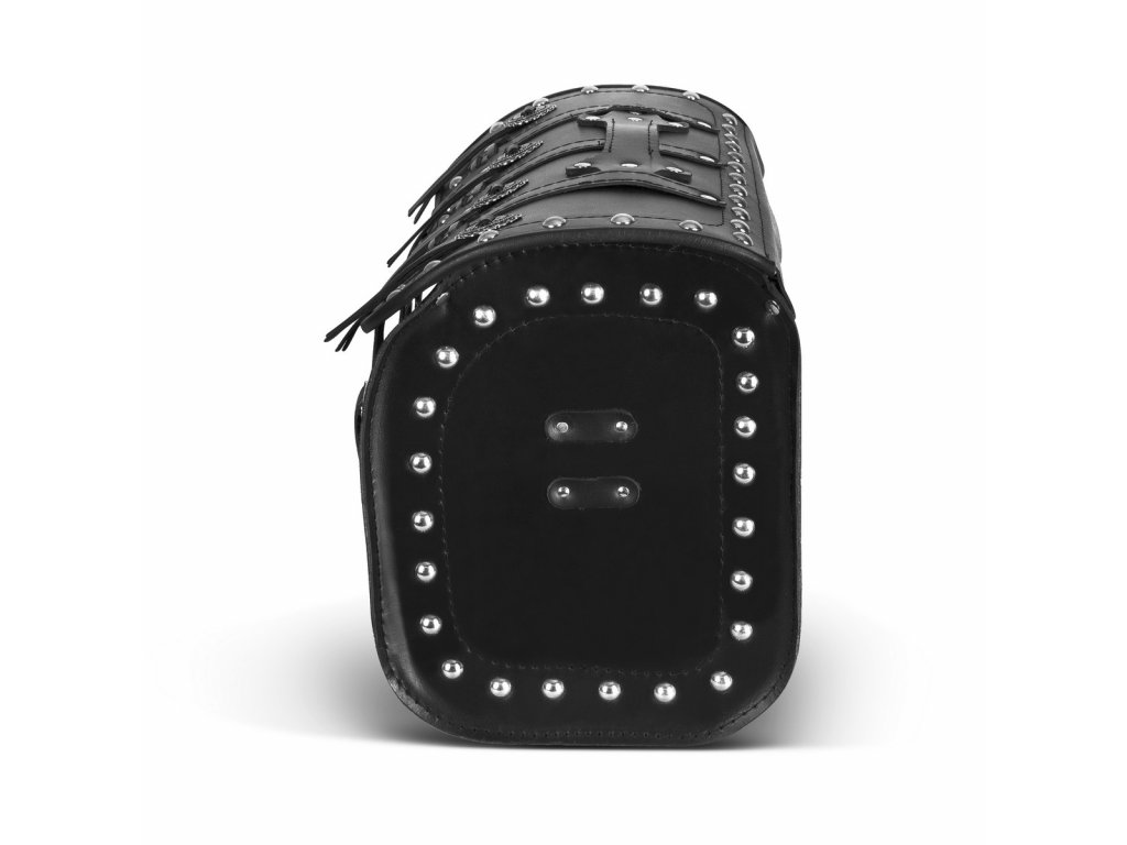 Kufr na motorku z hovězí kůže, tl. 2,8 - 3,2 mm opatřena vodoodpudivým povlakem.