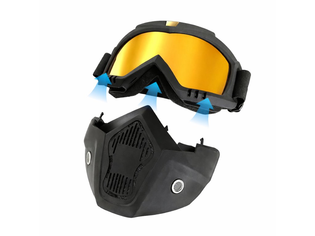 Maska na motorku TXR s brýlemi černo-zlatá