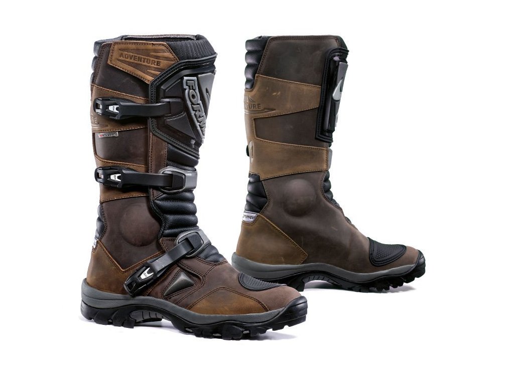 Moto boty FORMA ADVENTURE (DRY) hnědé vyrobené z plné, lícové kůže v kombinaci s membránou DryTex, která zaručuje odolnost proti vodě a zároveň prodyšnost materiálu. Podrážka PP Mid Dual Flex s protiskluzovou mezipodešví vhodná pro ATV-quad/adventure/enduro či trial. Vnitřek bot je extra měkký a zajišťuje tak pohodlí během jízdy. Kromě toho je možné snadno vyjmout antibakteriální stélku s ventilačním systémem A.P.S. (Air Pump System) a vyměnit ji.