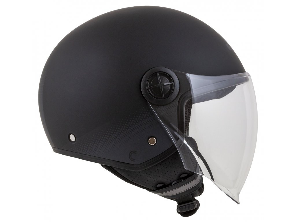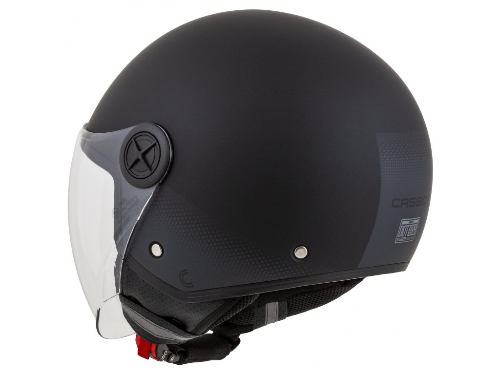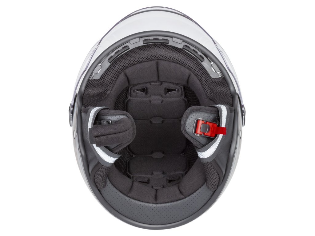 - Nízký profil skořepiny typu DEMI JET poskytuje pohodlné uložení do zavazadlových prostor skútrů.