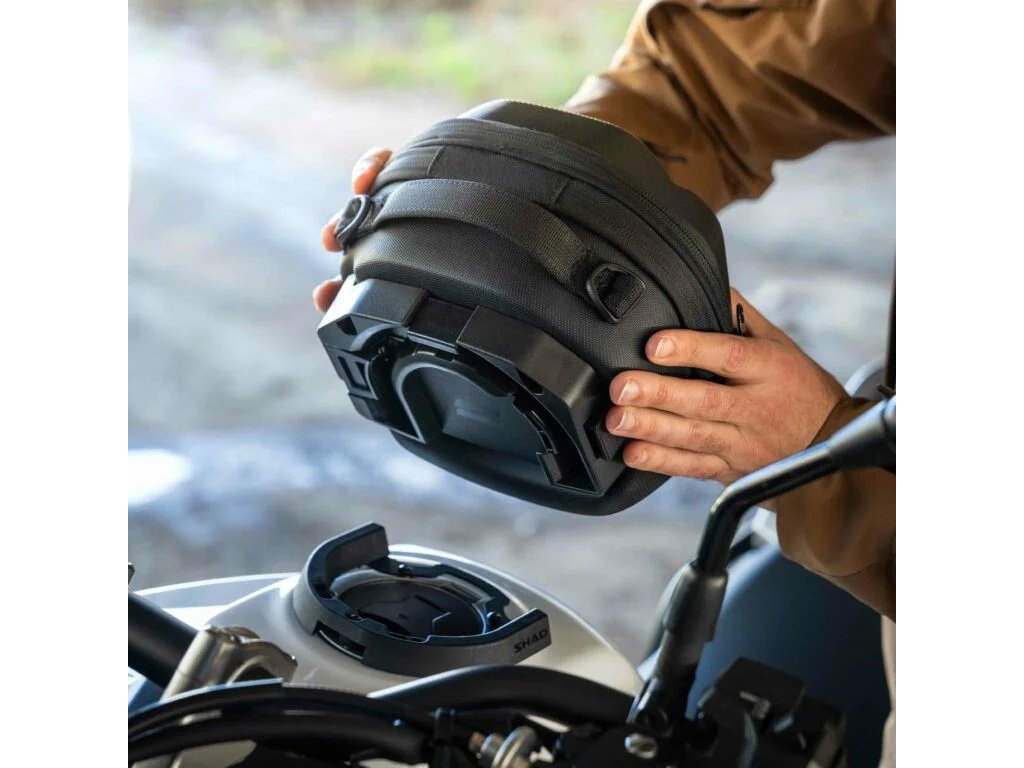 Tankvak E03CL PRO Click System Tank Bag je základní brašna na nádrž z řady Click System od SHADu. Je navržena jako dokonalý cestovní doplněk pro každodenní cestování a má ideální velikost pro telefon, peněženku, cestovní doklady a další věci. Click System je jedinečná metoda upevnění, která nahrazuje několik šroubů kolem víčka palivové nádrže držákem ve tvaru podkovy. Brašnu na nádrž pak lze zacvaknout na místo a uvolnit jediným tlačítkem. Brašna na nádrž E03CL PRO Click System je vybavena mnoha funkcemi, včetně zipů vhodných pro rukavice, pevné konstrukce, síťovaných kapes a tvaru přizpůsobeného jezdci. Jeho rozšiřitelnost umožňuje přejít ze 3 litrů na celkovou kapacitu 4 litry. Dvojitý bezpečnostní systém: Klíčový zámek na nástavci a kombinační zámek na otvoru tašky. Uzamykatelná verze. Pro doplnění sady je třeba přidat montážní sadu Click System určenou pro konkrétní motocykl. Objem 4 litry Rychlé odepínání pomocí tlačítka Uzamykatelná k motocyklu Pevná konstrukce udržuje tvar i když je prázdný Snadná instalace za pouhé 3 minuty Polstrovaná rukojeť pro přenášení Ramenní popruh součástí balení Odolný proti vlhkosti (vodotěsný kryt je součástí dodávky) Vnitřní síťovaná kapsa Zipy vhodné pro rukavice Velikost: 23 x 21 x 11 cm 2 roky záruka výrobce Navrženo v Barceloně