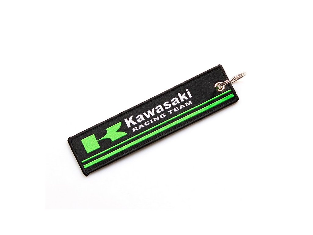 Textilní klíčenka Kawasaki má z každé strany jiný nápis. Z jedné strany jde o zelené logo a podtržení v kombinaci s bílým textem Kawasaki RACING TEAM. Ze strany druhé je dominantní bílý nápis Ninja, na boční straně potom o 90° pootočený text Ninja (zeleně) Racing Team (bíle). Součástí je také kroužek pro upevnění.