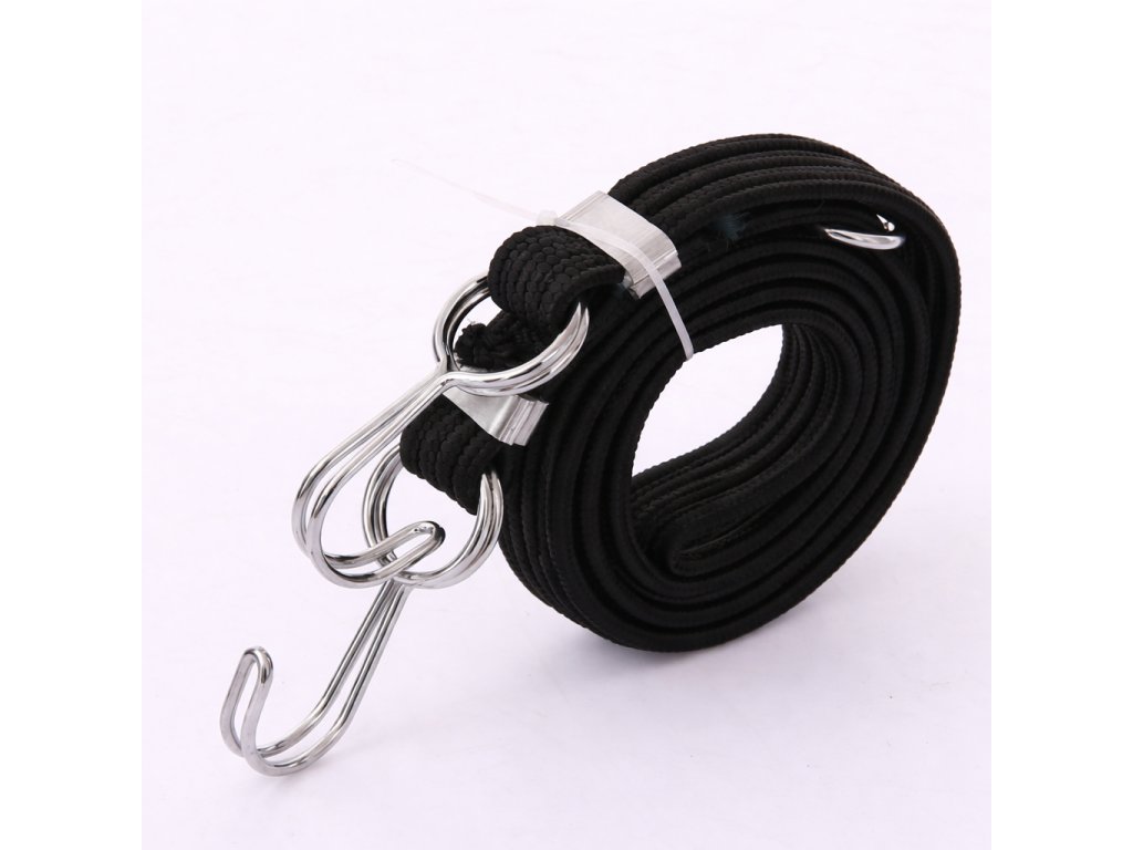Plochá upínací guma ukončená háčky. Délka gumy 200 cm, šířka 23 mm. Maximální nosnost 20 kg. Otočné háčky z dvojitého drátu pro větší pevnost v tahu a snadné uchycení nákladu. Zaoblené konce háčků zabraňují poškrábání. Plochá guma pro ochranu nákladu.
